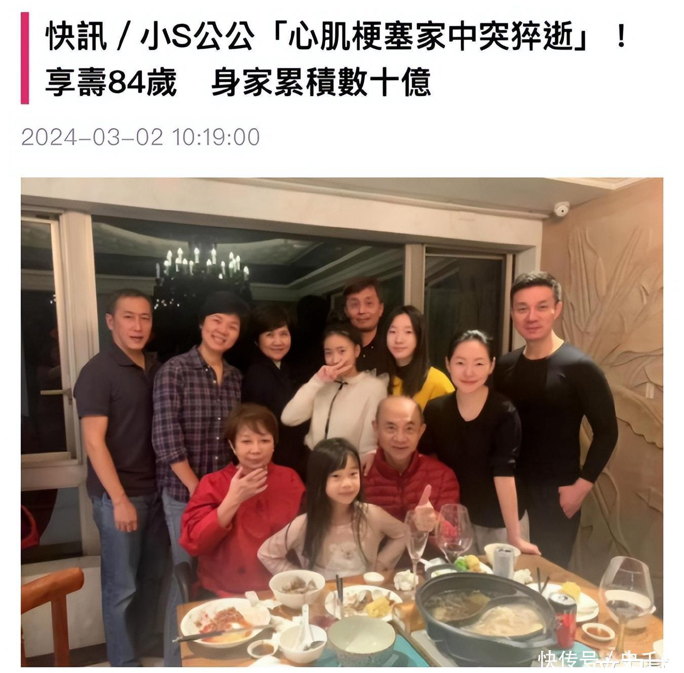 3月初,一则恶耗传来。 据台媒报谈,小S的公公因为心肌梗塞徒然离世,享年84岁。小S和许雅钧授室近20年,和公公婆婆王人相处的十分融洽,这出人预想的恶耗也让小S十分缅怀。