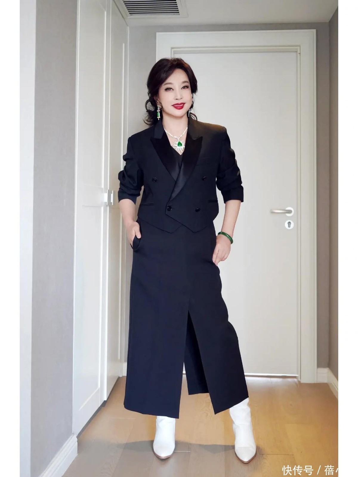 配饰利用很贫瘠,如若你认为你的搭配太单调无趣,那么你也不错计议一些漂后的配饰点缀,就像刘晓庆搭配着翡翠项链以及长耳饰,齐突显出了高等感,和西装外衣勾搭起来也显得相称的利落前卫。