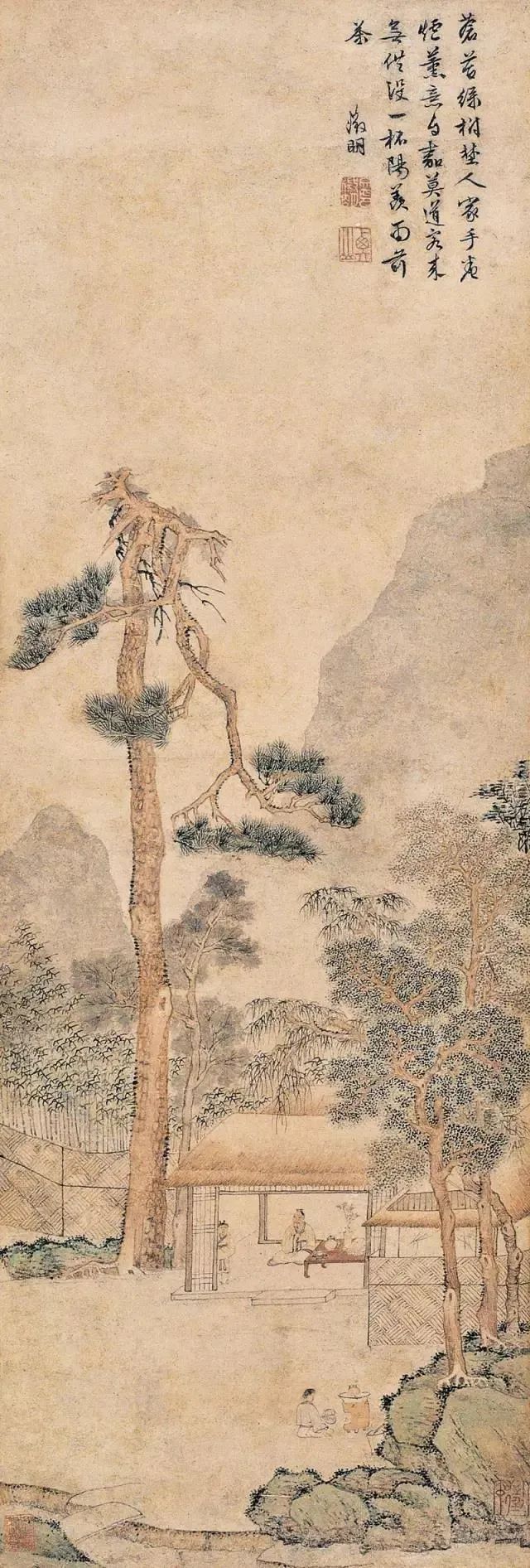 文徵明 乔林煮茗图